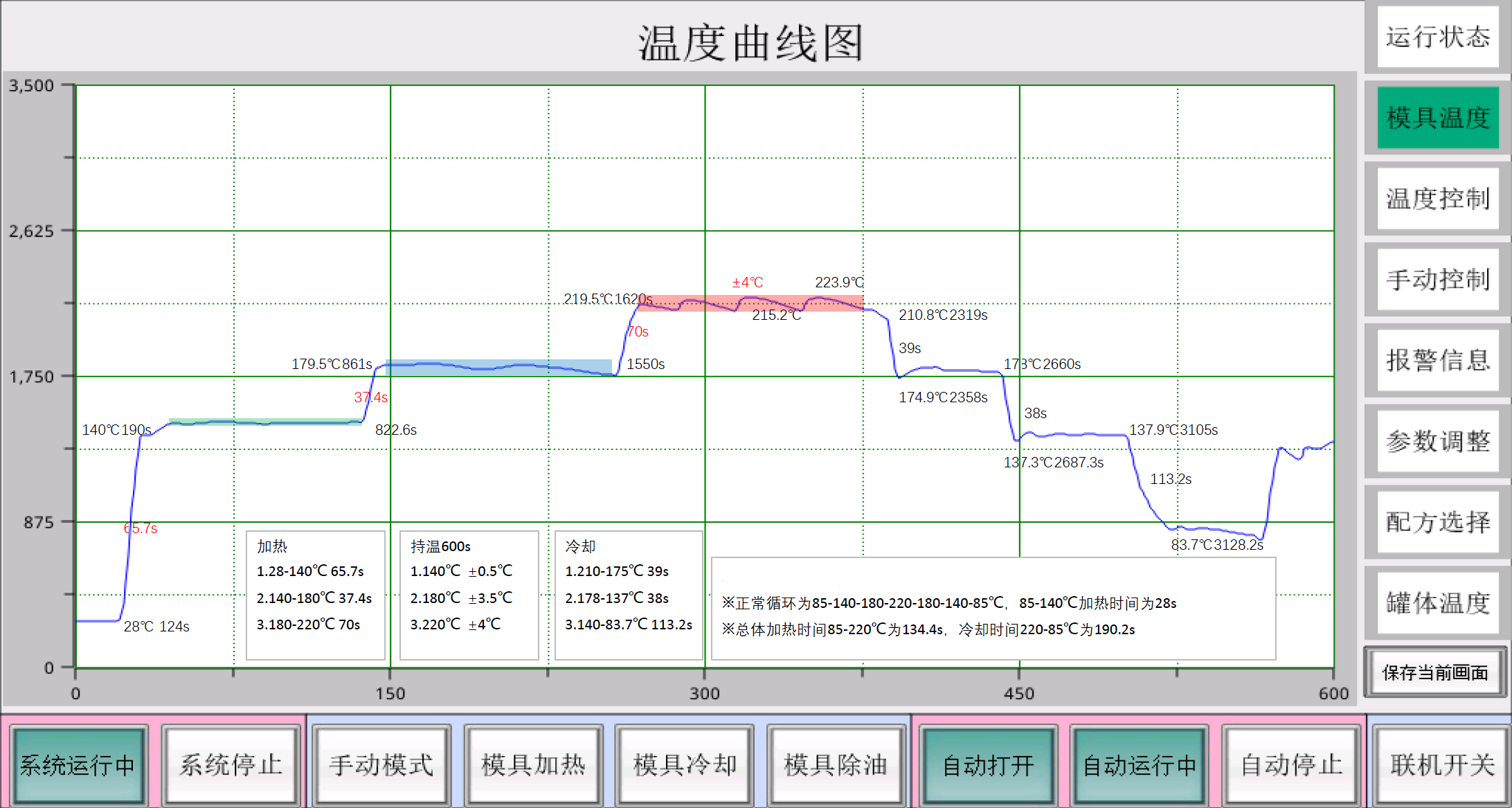 The URHCM system has excellent performance and stability in operation. The temperature rise and fall test curve is shown below:
